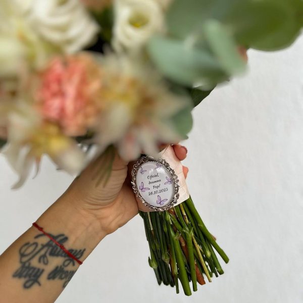 Brosa personalizata pentru buchet nasa, Perlbeige