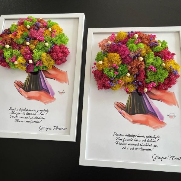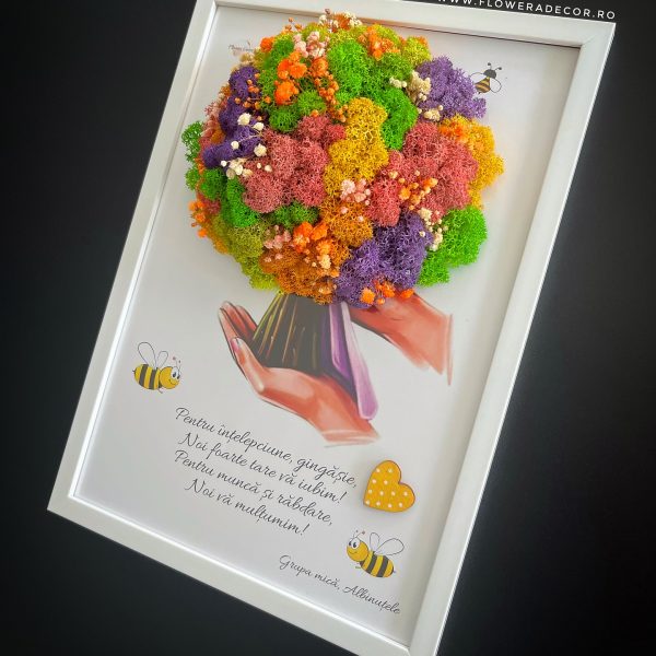 Tablou pentru educatoare cu licheni stabilizati – Buchet „Grupa Albinutelor”