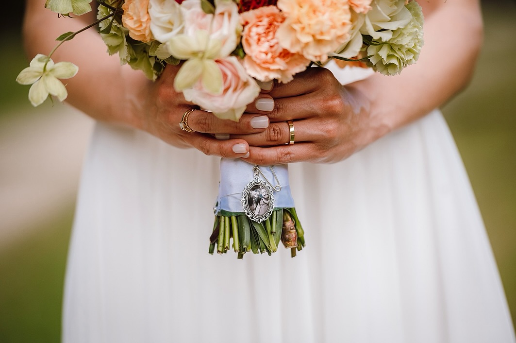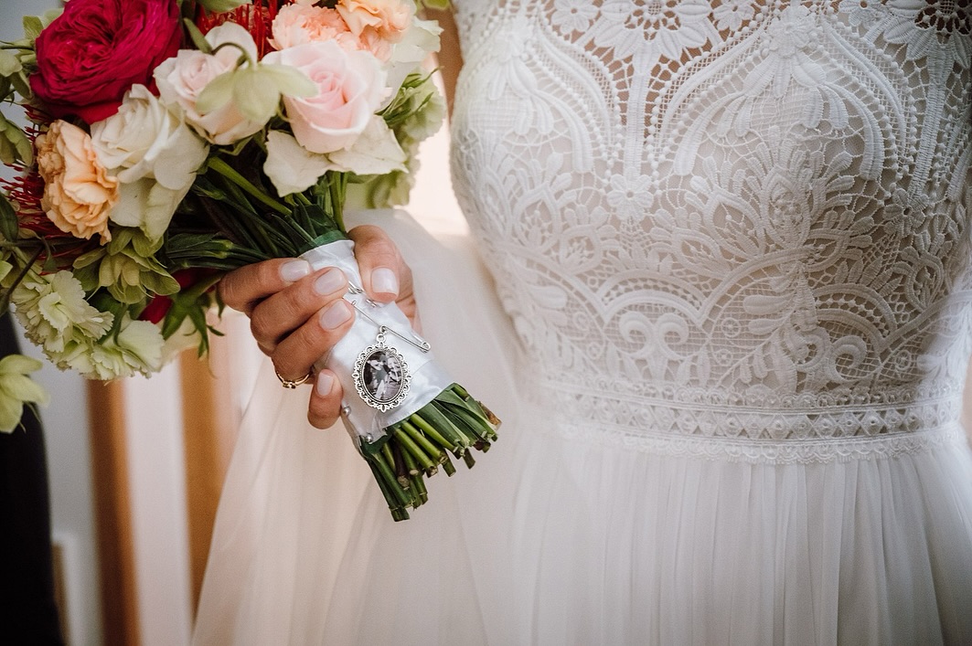 Brosa memoriala pentru buchet cu medalion