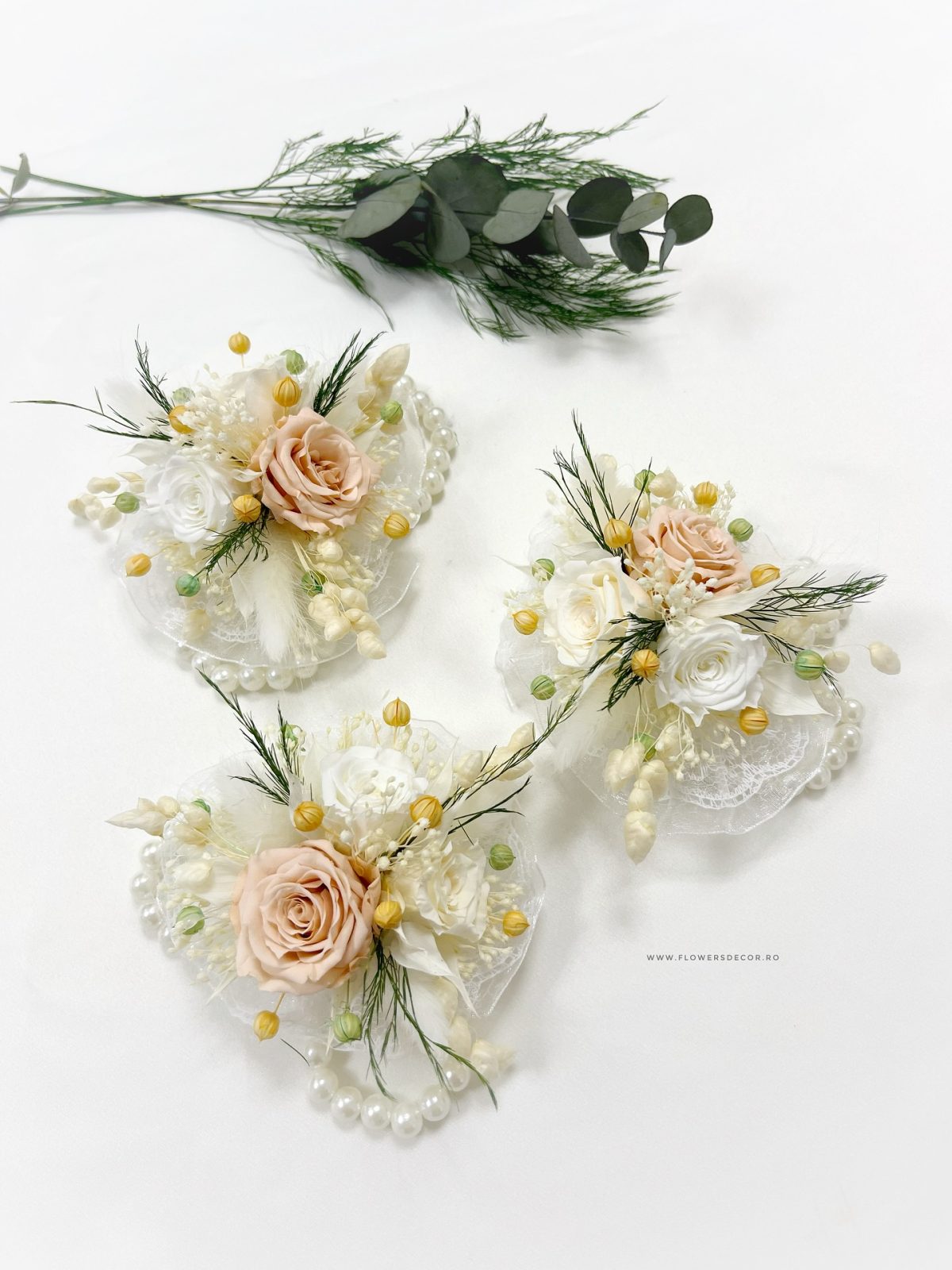 Bratari pentru domnisoarele de onoare, nase, mame decorate cu flori uscate si criogenate