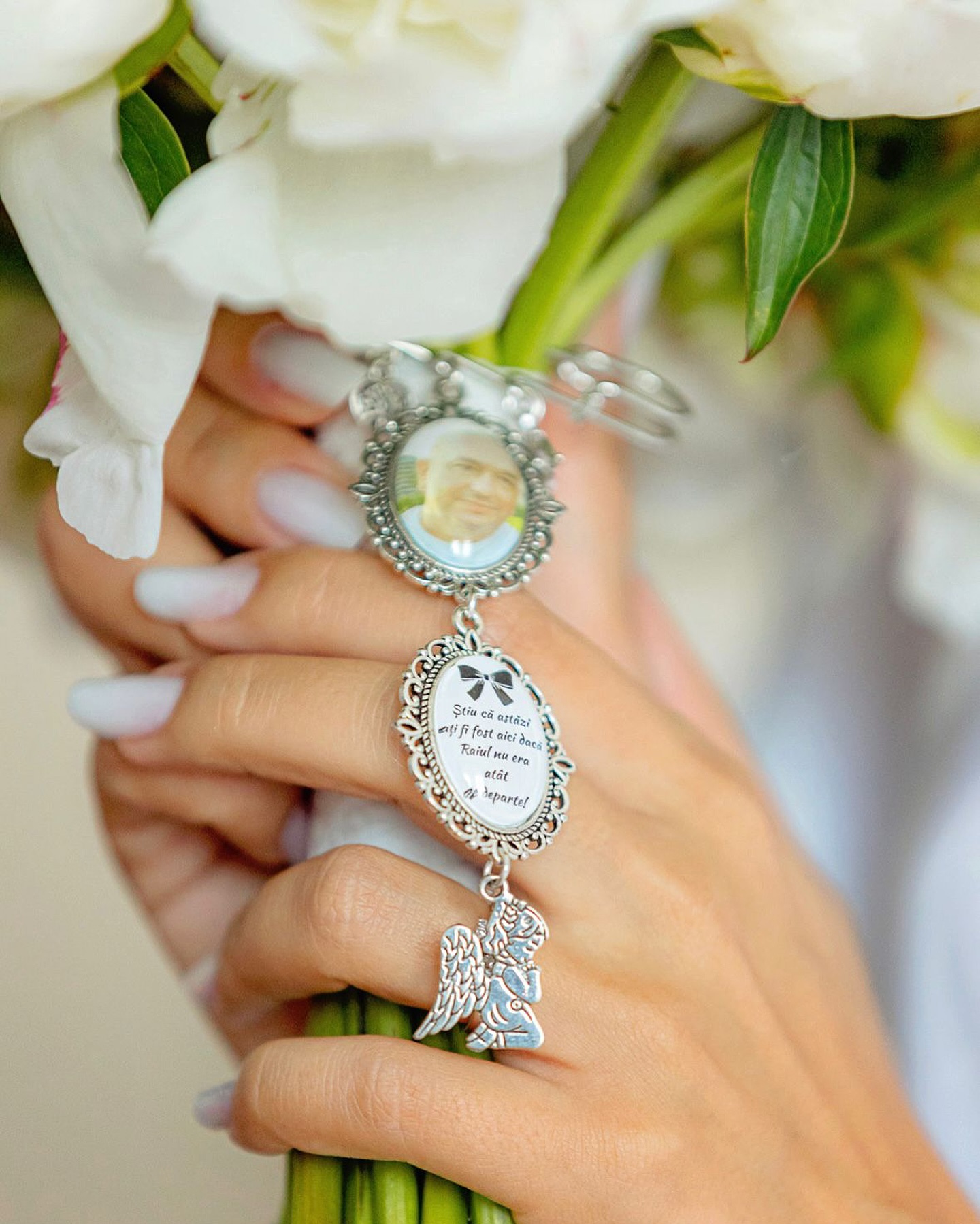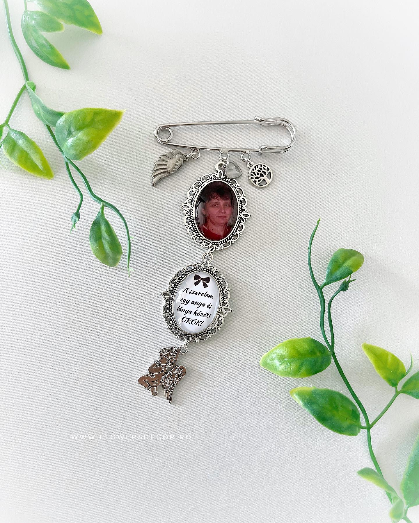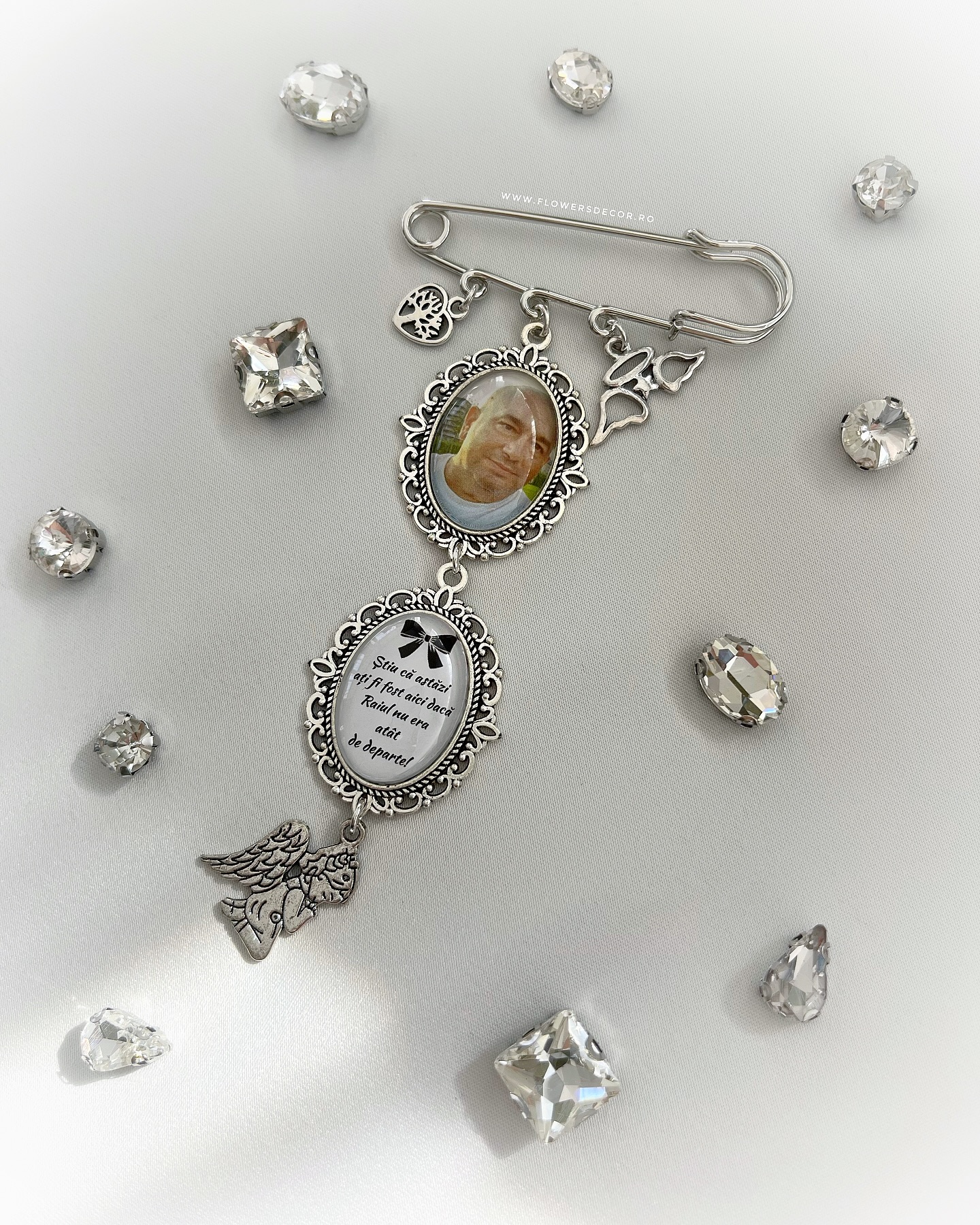 Brosa memoriala pentru buchet cu doua medalioane