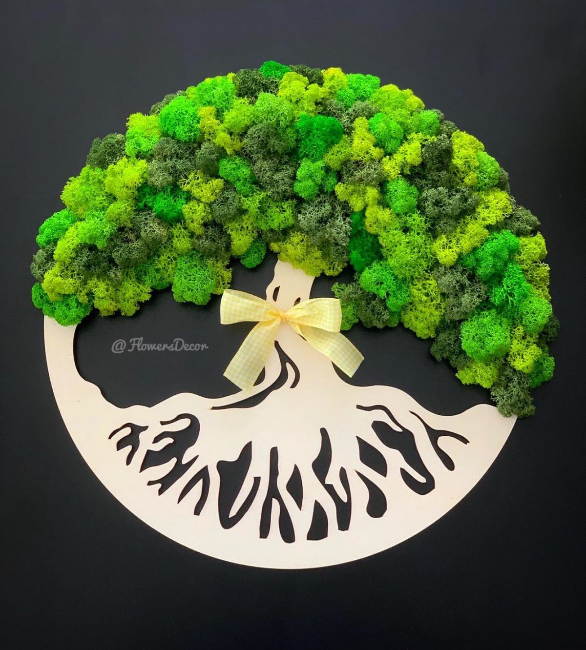Aranjament cu licheni – Copacul vietii S; Diametru 30 cm; Culoare licheni: Verde inchis/Verde deschis Sistem de prindere pe perete inclus. Tablourile cu licheni dau oricarei incaperi un aer proaspat, sunt realizate manual, iar fiecare produs in parte este unic.