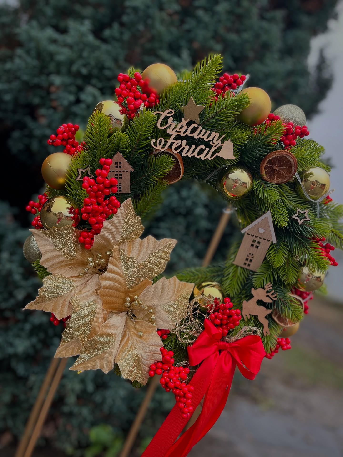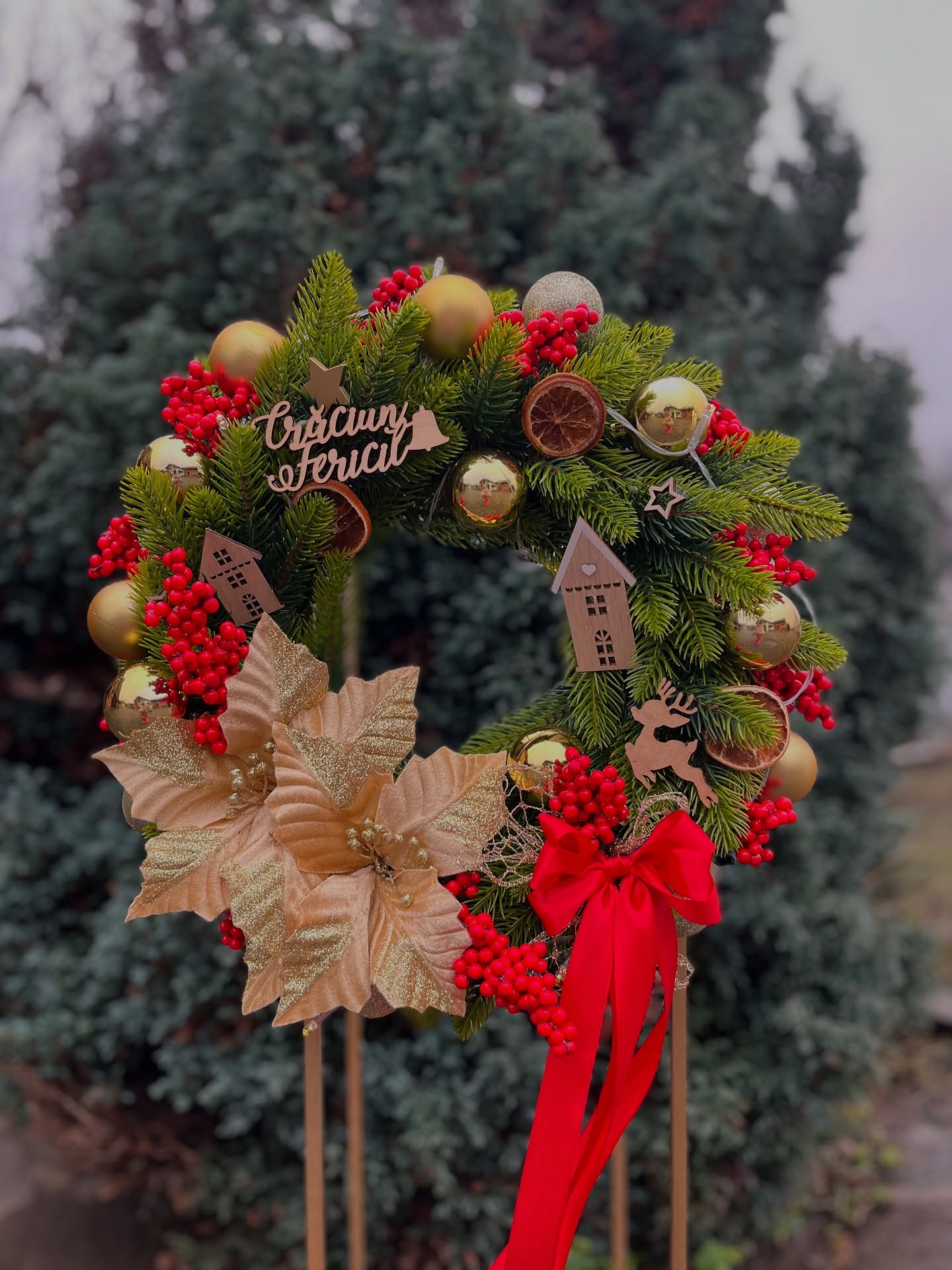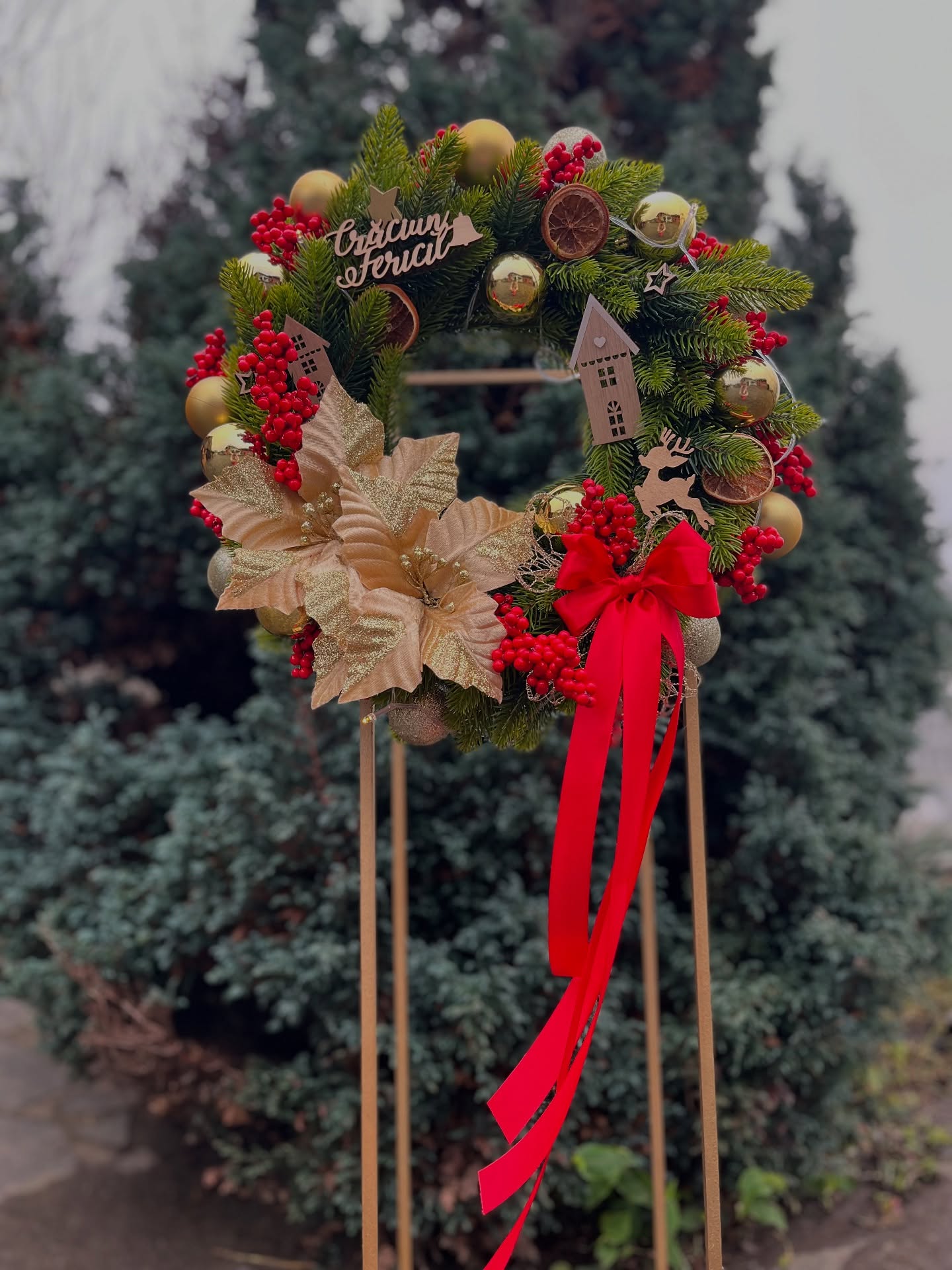 Fii primul care scrii o recenzie pentru „Coronita Craciun pentru usa cu efect 3D rosu-auriu, 45 cm”