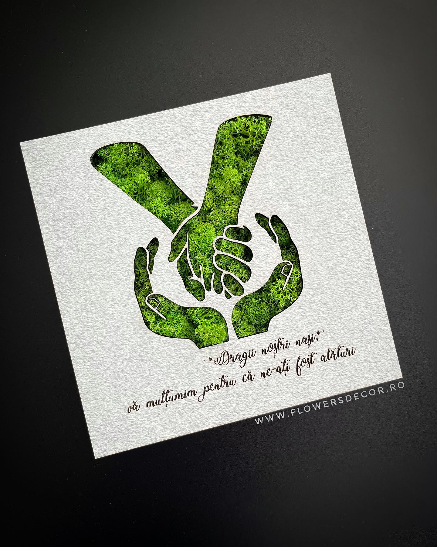 Rama tip caseta cu licheni stabilizati – personalizat cu mesaj gravat pentru nasi.