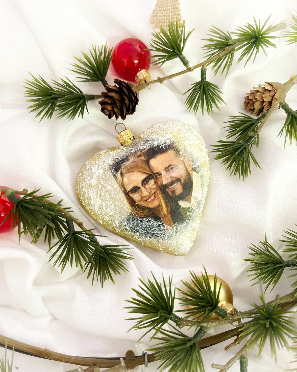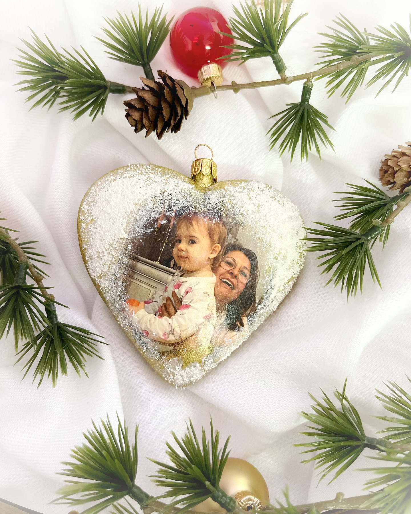 Glob personalizat cu poza celor dragi realizat tehnica transfer de imagine, 10 cm inima