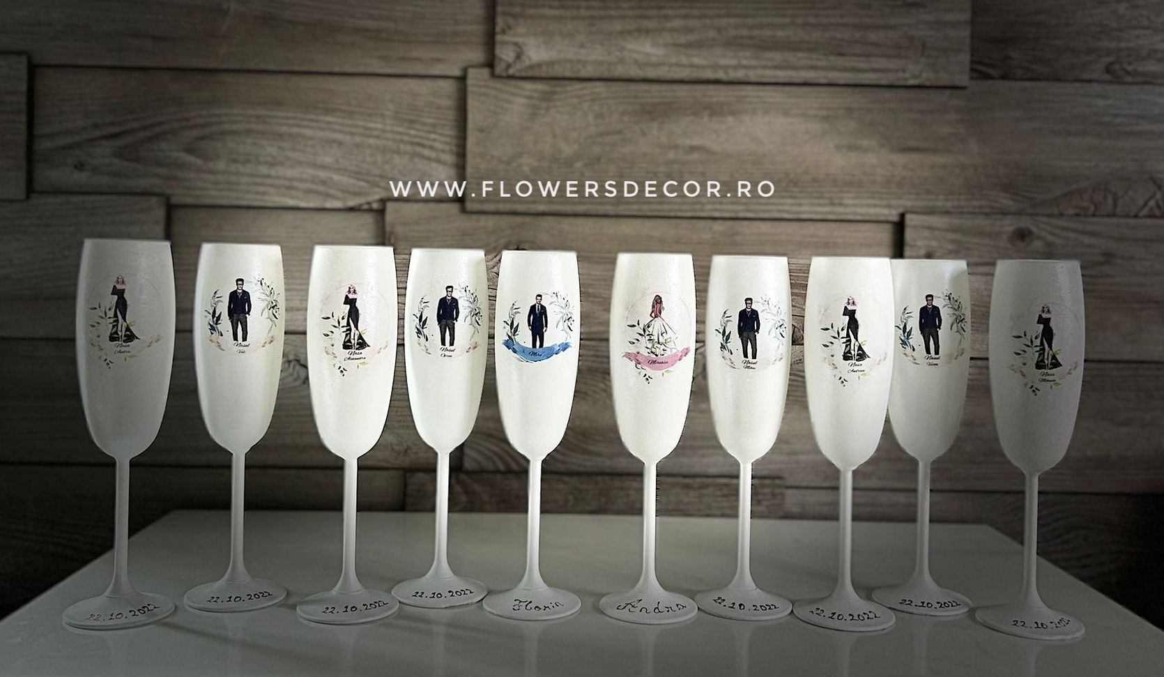 Set 10 pahare sampanie miri/nasi handmade, floral