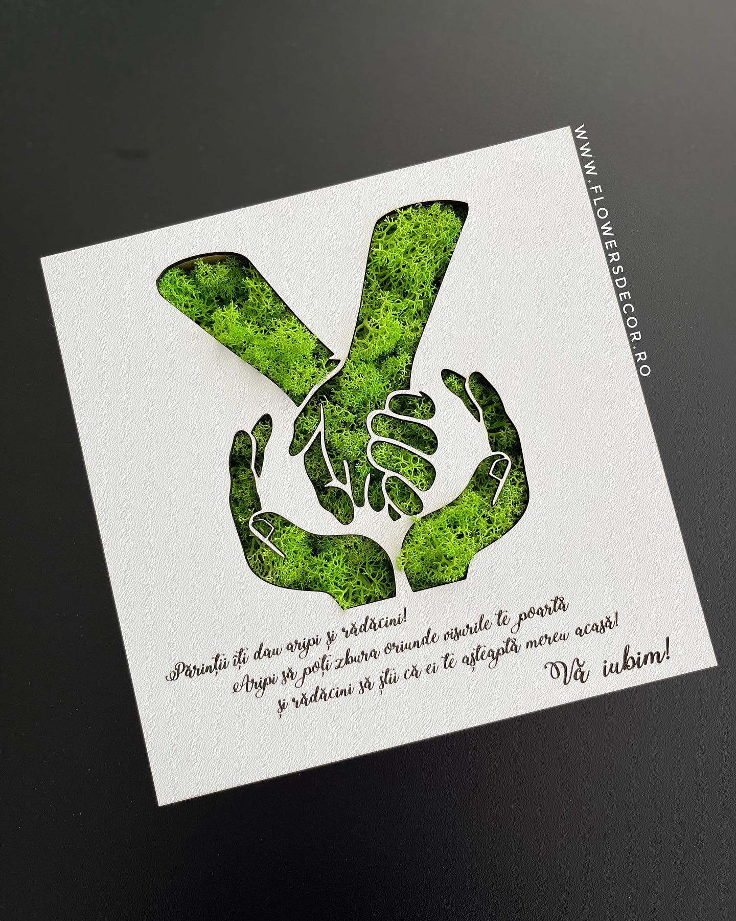 Rama tip caseta cu licheni stabilizati – personalizat cu mesaj gravat pentru parinti.